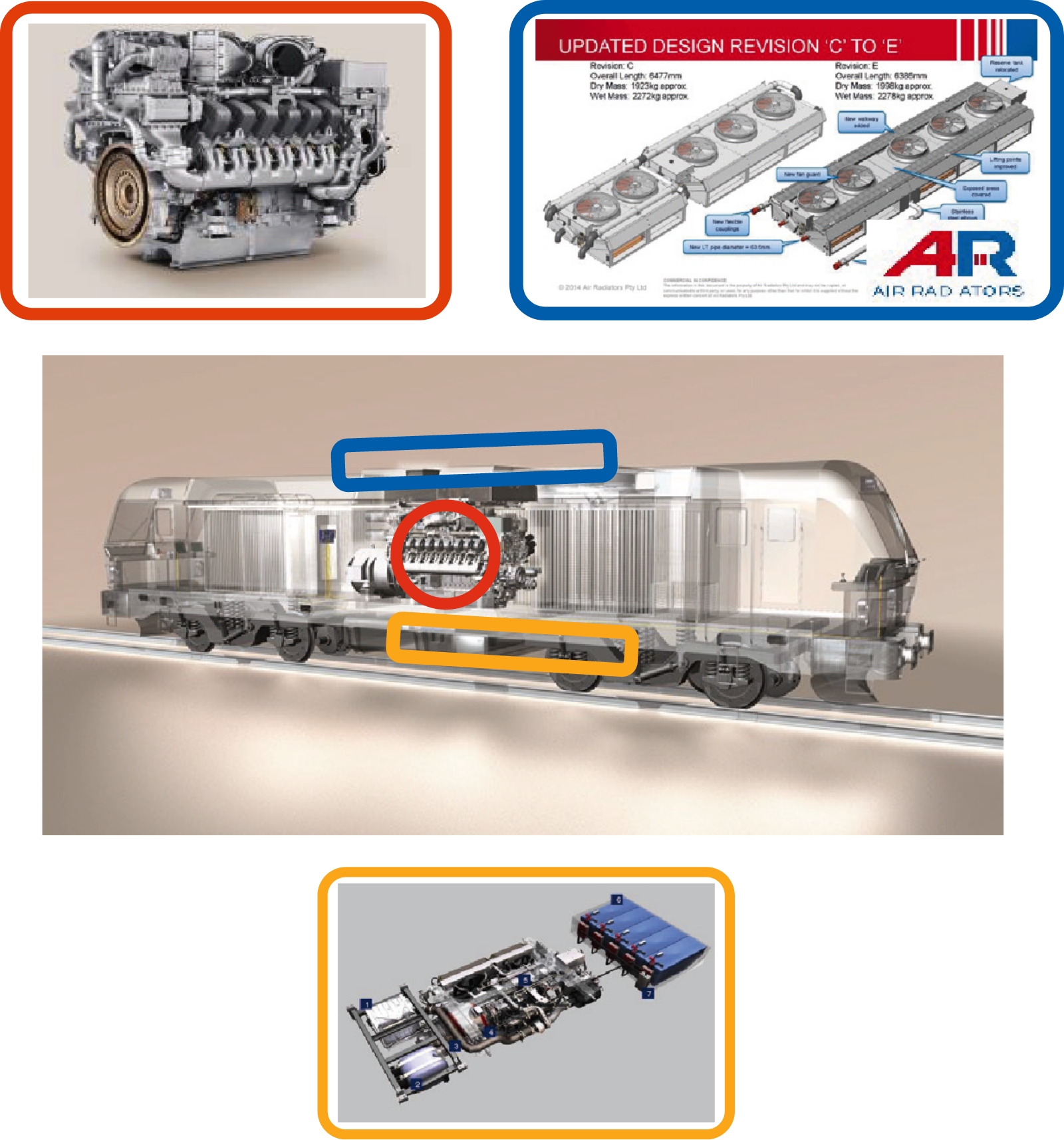 国内旅客列車向けにMTU12V4000R43LおよびAir Radiators 社のルーフトップタイプ( 天井置き) ラジエータを納入しております。